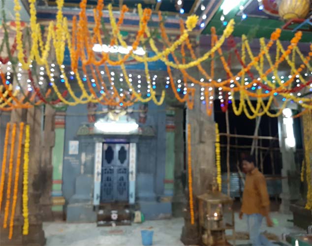 மாங்கனித்திருவிழா உற்சவம் முன்னிட்டு அம்மையார் சன்னதியில் மலர் பந்தல் அலங்காரம் .